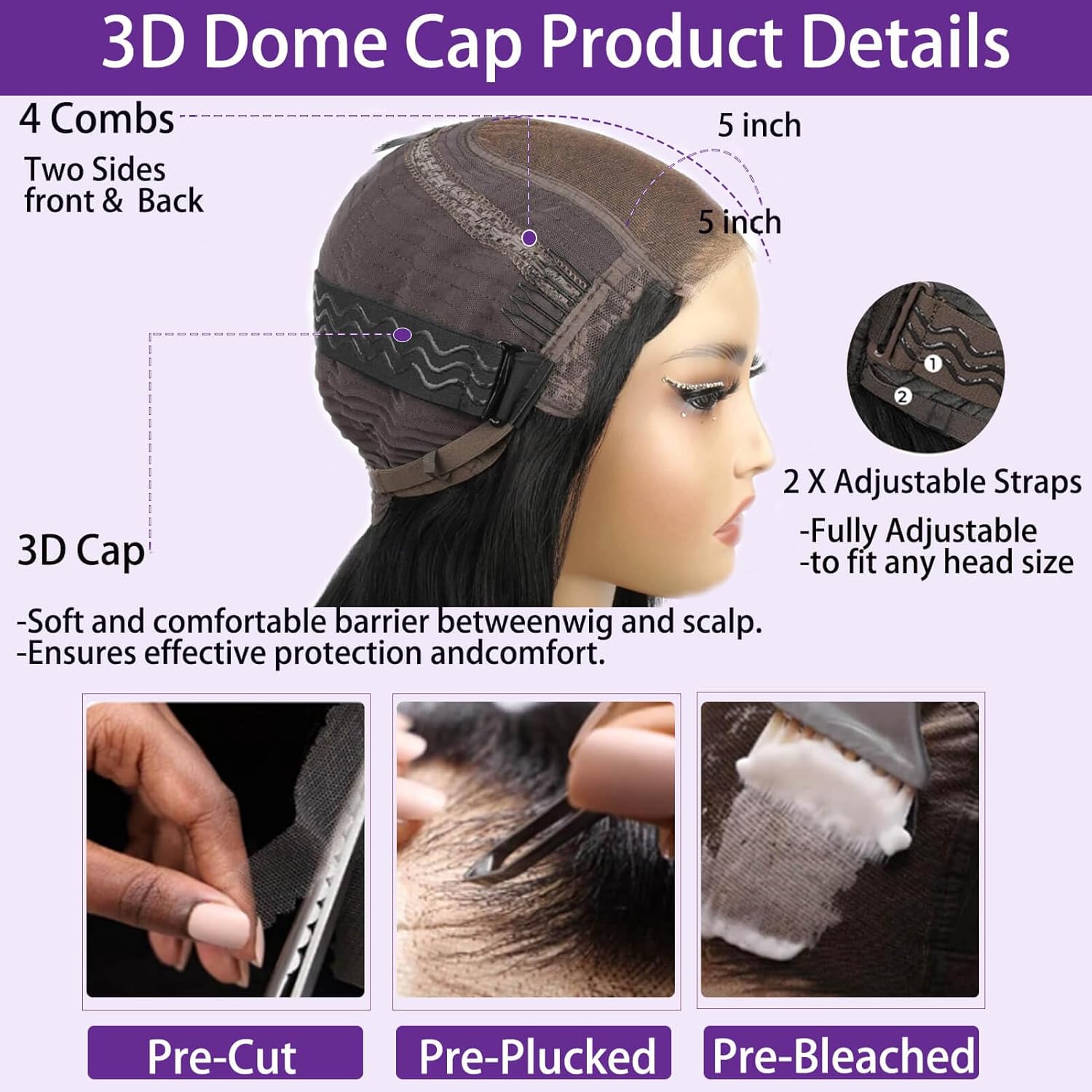 - Cap Size:Adjustable Hidden Strap Wig Size(21.5-22.5 Inch) for Most People.