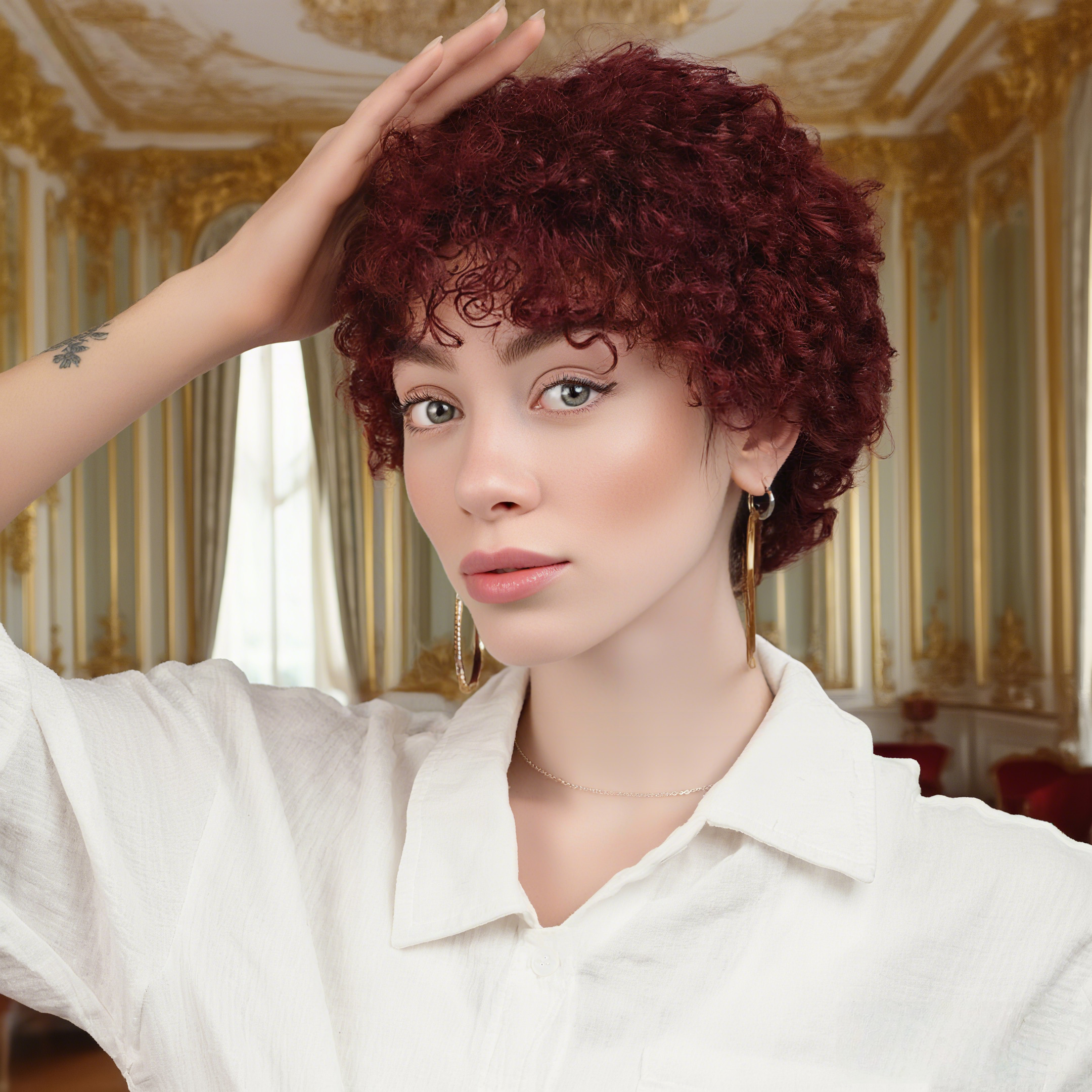 1B Natural Black, 4# Brown Wigs, 99J Burgundy Wigs, Curly Wigs, Machine Made Wigs, UncategorizedShort Curly Wig Human Hair Wigs for Black Women Brazilian Virgin Human Hair Machine Made None Lace